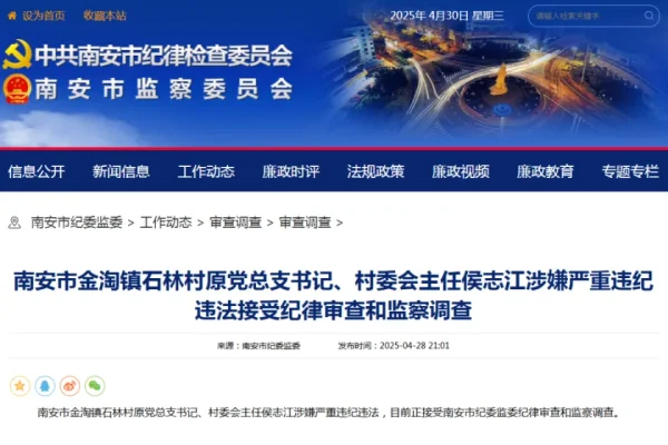 泉州一村原党总支书记、村委会主任被查