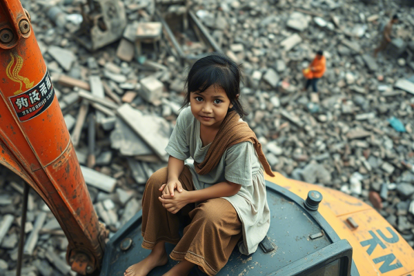 现场直击!缅甸女孩被困废墟60小时:获中国人双手救出,坐挖掘机撤离